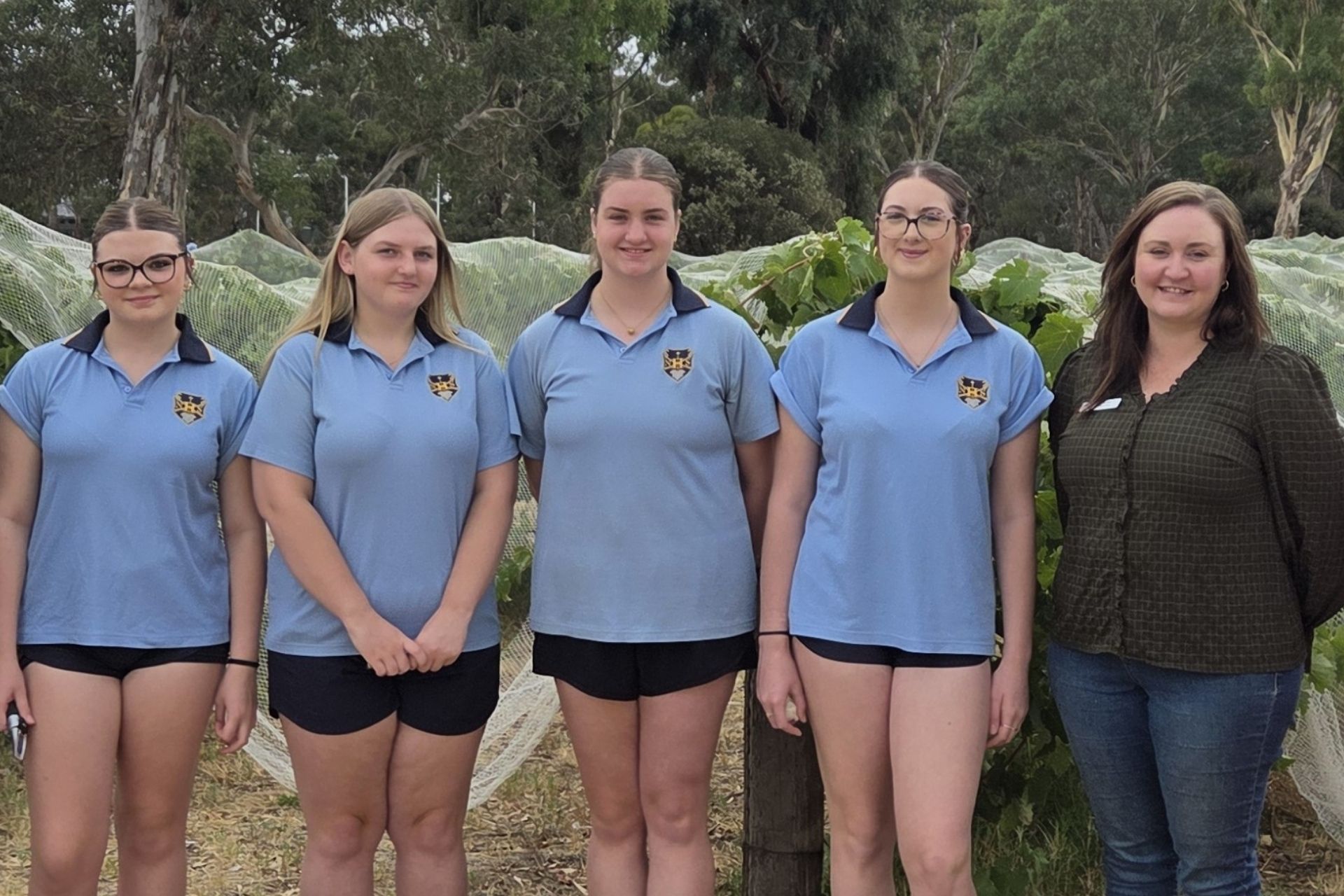 Image: Ms Kate Ruchs, Wine Manager, with Vines and Wines students Mikayla, Rianna, Jemma and Sienna.