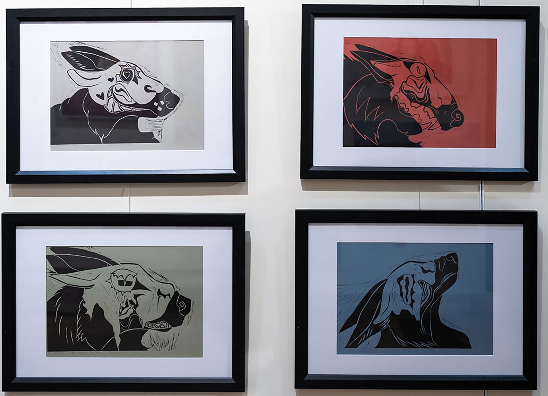 - Hidden Beneath the Skin: Grief, Burnout, Deception & Rage by Paige Schulz – a lino print series exploring emotions through surrealism.
