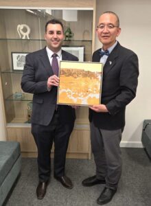 At the conclusion of his visit Nuriootpa High School gifted Principal Woo a special piece of art, created by local artist Stuart Hoerisch.